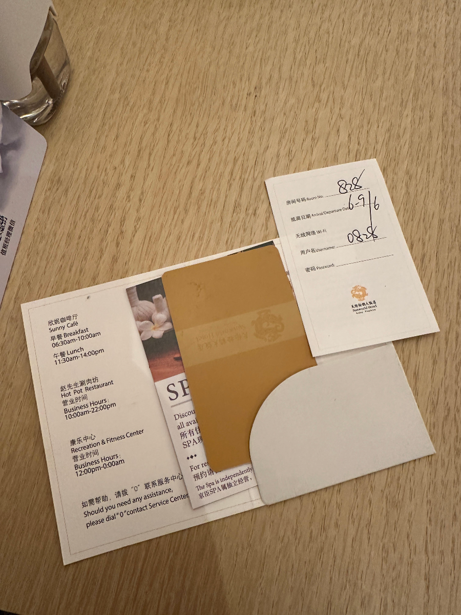 룸카드가 포함된 종이 키패키지에는 조식 시간(06:30~10:00)